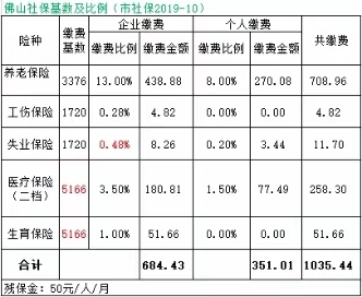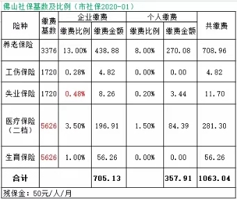 佛山社保基数及比例 标准表如下: