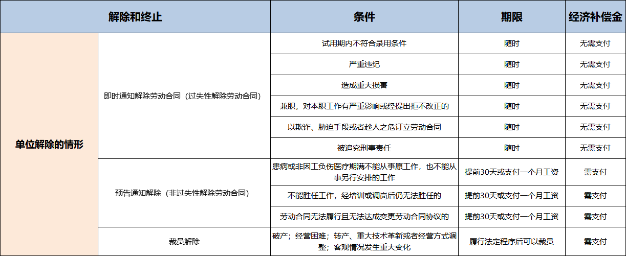 HR须知:用人单位单方面解除劳动合同的条件、期限...