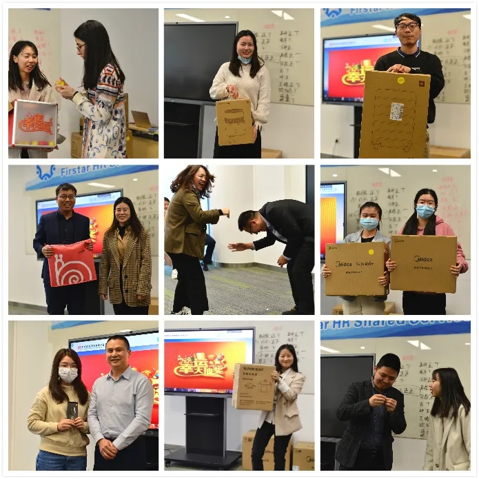 看着别人领了奖,是不是眼红了?没事,公司也给大家准备了超级多奖品,还有阳光普照奖哟,人人有份,拿奖拿到手软。