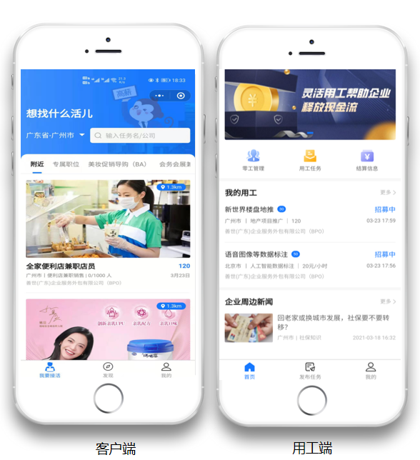 灵猴Job韧性十足,通过不断迭代升级,不断满足to B与to C需求,确保用户体验。对企业来说,发布零工需求后,灵猴Job调用线上+线下招聘资源和渠道,确保企业有人用,快速交付。就拿灵猴Job合作过的某大型零售巨头的兼职导购案例来说,门店分布在全国1000多个区县,门店超过4000家,每天都需要大量美妆产品导购员(BA),需要实施更灵活的人力资源策略满足业务需求。在灵猴Job平台,需求都可实现,如哪个门店缺人就发布哪里的岗位,可设置按销售额提成支付,基于灵猴Job强大的地理定位的任务匹配模式,零工在线接单,签署项目专用《自由职业者服务协议》后,完成工作后,由店长确认结果,灵猴Job平台按约定代垫导购收入,可做到日结、周结2种垫付模式,极大增强了兼职导购积极性。不仅提升了工作效率,还降低了用人成本与劳动风险。对个人来说,可通过定位寻找附近零工机会,也可选择喜欢的行业,接活后,待企业确认就可立即工作,享受收入。在技术赋能下,灵猴Job实现了企业与个人快速触达、精准匹配,优化了服务体验,驱动灵活用工快速发展。