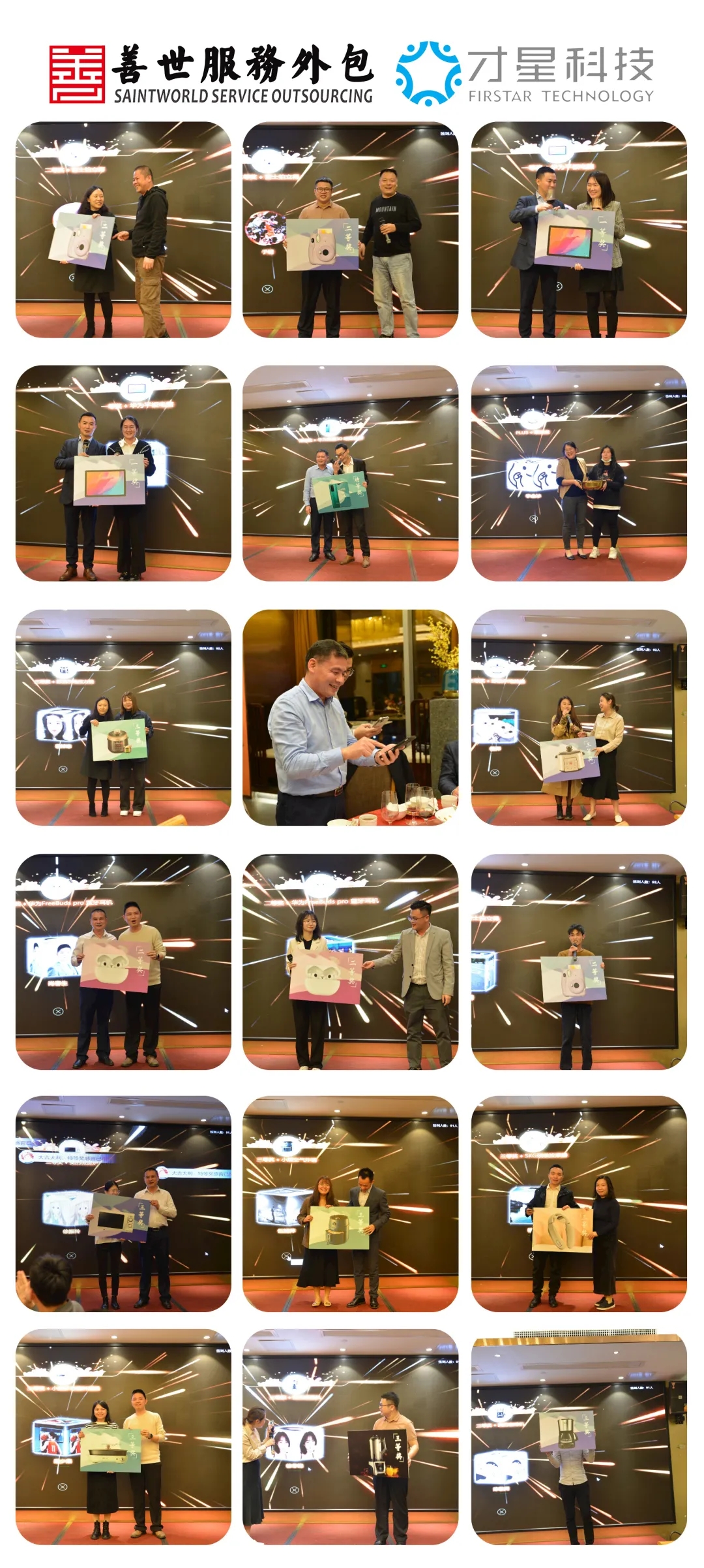 回顾2021年,公司取得的成绩离不开团队伙伴们的辛勤付出,与优秀者同行,是一种习惯!此次年会也对优秀部门及“有能力、有态度、有担当、有成绩”的“四有”伙伴进行全方位的表彰。分别设有年度优秀部门、优秀管理者、优秀员工、优秀实习生、销冠团队、交付能手、服务之星、管理成长奖、奉献奖、特别贡献奖、进步奖、最佳驻场代表、伯乐奖、市场传播大使、最佳协作奖、最佳人气奖。