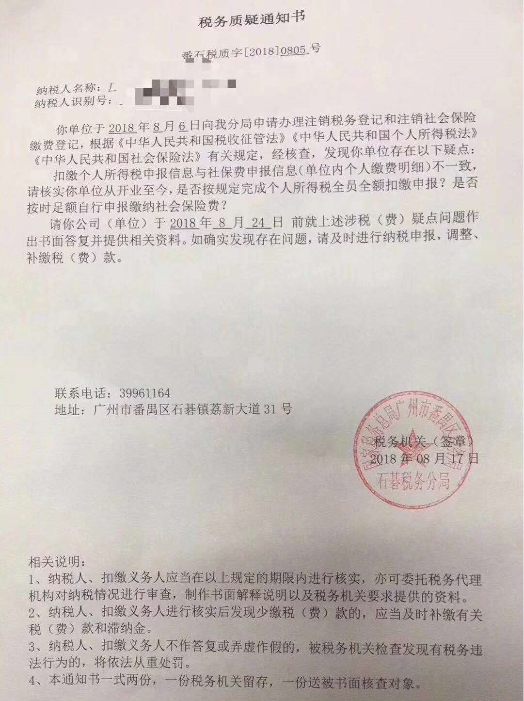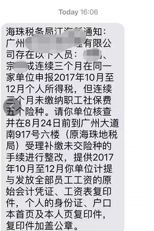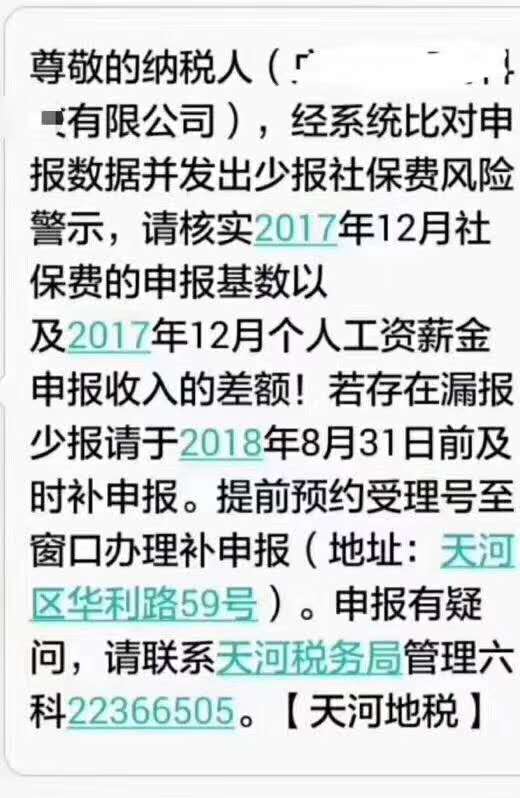 国地税合并刚刚落地,全国各地陆陆续续开始对社保违法情况进行清查,“不差钱”的广州各区税务部门根据系统预警也开始对企业发出配合检查整改的通知。如图所示: